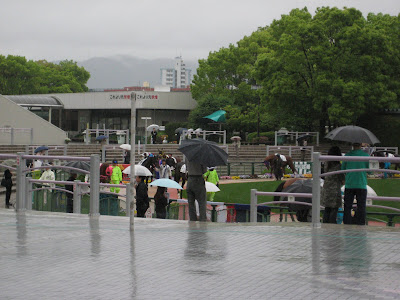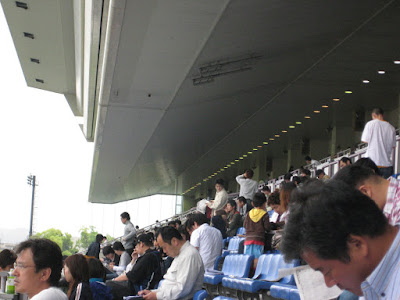 So we pay 200 yen to get in ($2) and soon realize that we are the only foreigners in the whole place. I've gotten pretty used to feeling like the minority, but usually in a crowd of about 7,000 people there will be at least 50 foreigners or so, but not here. 7,000 Japanese, and 5 foreigners. Lucky most of them were way too concerned with betting money too give us glaring eyes.