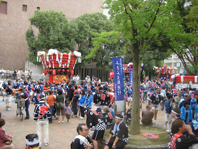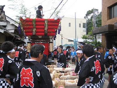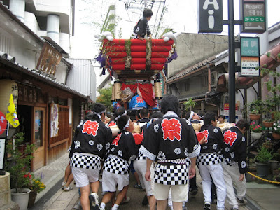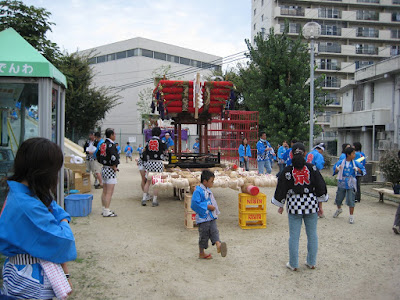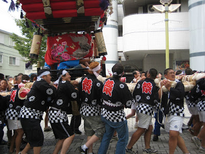 They build these portable shrines (omibashi) and then carry them all over the city. She asked me and Sean (the Canadian teacher at my school) to help out.