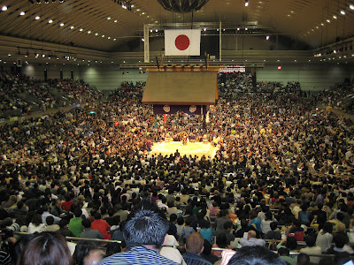 This was the main fight. Some guy from Mongolia against the top Japanese wrestler. It was pretty cool cause the Mongolian guy lost (who everyone hates) and the place went crazy and started throwing stuff on the court. I tried to uploaded a video but I think it was too big.