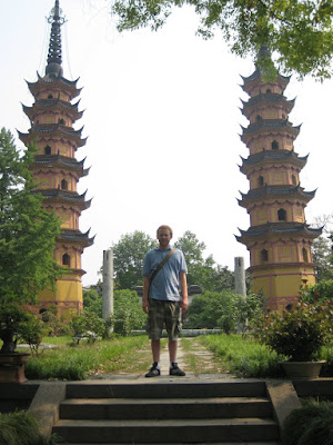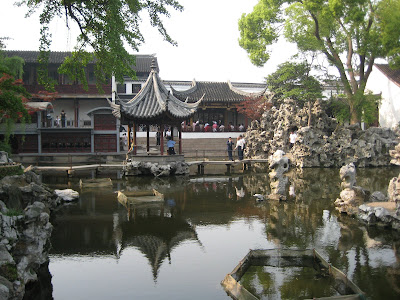 We get to the town of Suzhou. Its known for its rock gardens. As soon as we get off the station, I realize we are definitely out of the International city of Shanghai. Mainly because people are staring and pointing at us, but mainly at my buddy Robbie since he's 6'8. We take a Taxi to the center of town. Eat a nice lunch. Walk around the city see some temples and gardens.