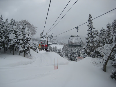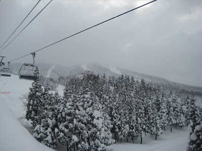 Me on the slopes.The lifts, snowboards, orange slow signs are all exactly the same as in North America. Its kind of strange really because the only way you can tell you are in Japan is because the Ski Slope names are in Japanese.